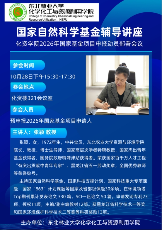 讲座题目:2026年度国家自然科学基金申报辅导讲座