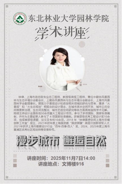 钟律,上海市政总院专业总工程师,教授级高级工程师,兼任中勘协风景园林与生态环境分会副会长、上勘协风景园林与生态环境分会副会长、上海市风景园林学会副理事长。期致力于景观设计和咨询相关领域的研究与思考,秉承“大景观”和“大生态规划”相契合的设计理念,在城市滨水空间开发、城市公共空间微更新治理、生态河流整治、城市艺创空间研究等各方面具有独特学术见解。陆续主持设计全国各地50余项重大工程设计项目。参与了多项国际、国家标准编制,并作为主要起草人参与了 4 项国家标准编制。获省部级优秀工程设计奖10余项,完成省部级课题、论文及专利10余项。2018 年“钟律景感空间上海市劳模创新工作室”成立、2021年获年度上海国资委“国资骐骥”高层次创新领军人才、2021年获评上海市勘察设计行业“百年·百事·百人”奖、2024、2025年度上海市黄浦区优秀社区规划师等荣誉称号。