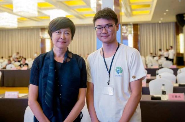 2018年,获得第十三届中国大学生年度人物入围奖的何文珍,参加绿色中国发展论坛期间与敬一丹老师合影。