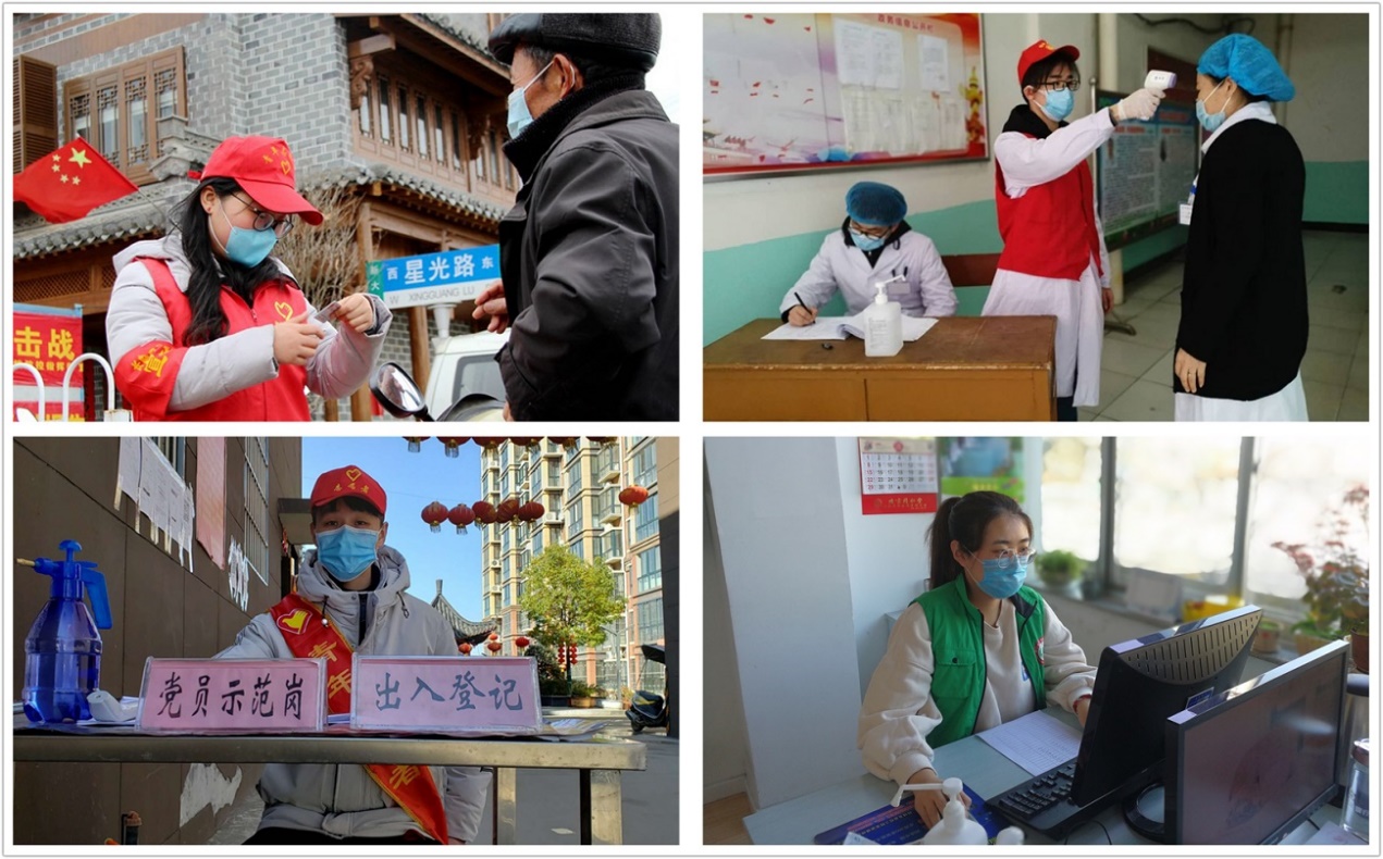 2020年疫情期间,学校青年志愿者在社区、医院等防控一线