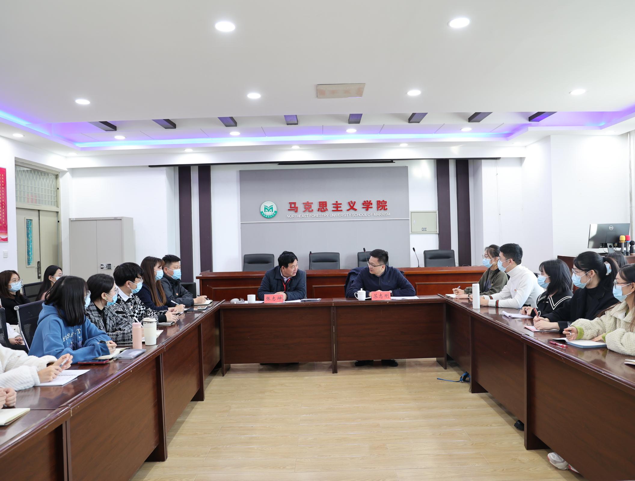 为迎接党的二十大胜利召开,密切联系学生、了解学生、走进学生,为学生们排忧解难,10月12日下午,学校党委书记张志坤深入马克思主义学院,与联系班级和党支部的学生座谈交流,2022级思想政治教育学科全体硕士研究生和马克思主义学院研究生第一党支部的部分学生党员代表参加座谈会。会议由马克思主义学院党委书记苏志刚主持。
