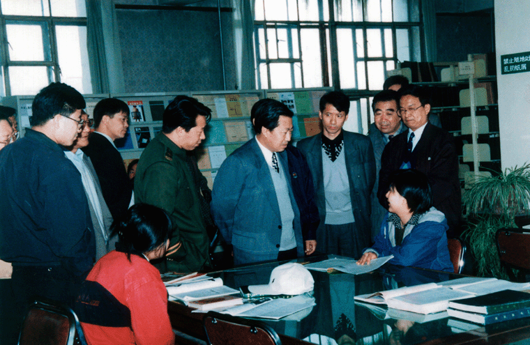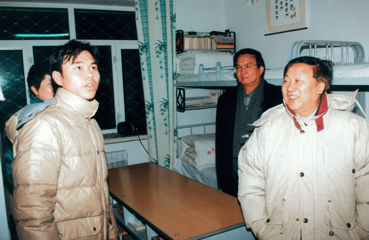 2000年初国家教育部副部长周远清在我校大学生公寓考察房间设施