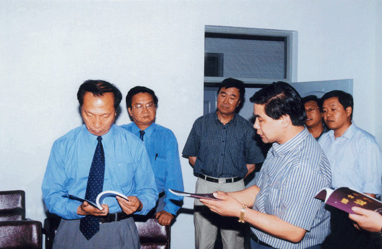 2000年8月原国务院学位办主任、现国家教育部副部长赵沁平来校视察实验室